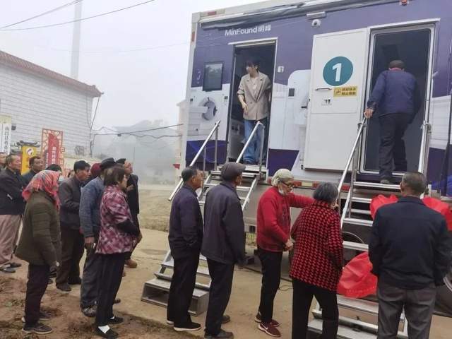 本次活动的一大亮点是我院将移动车载CT开进了村里,运用先进的检测设备配合智能AI读片和5G技术,影像师当场出具检查报告,专家团队对筛查结果提出专业诊疗意见和用药指导,让老百姓在家门口享受到了省级医疗资源服务。